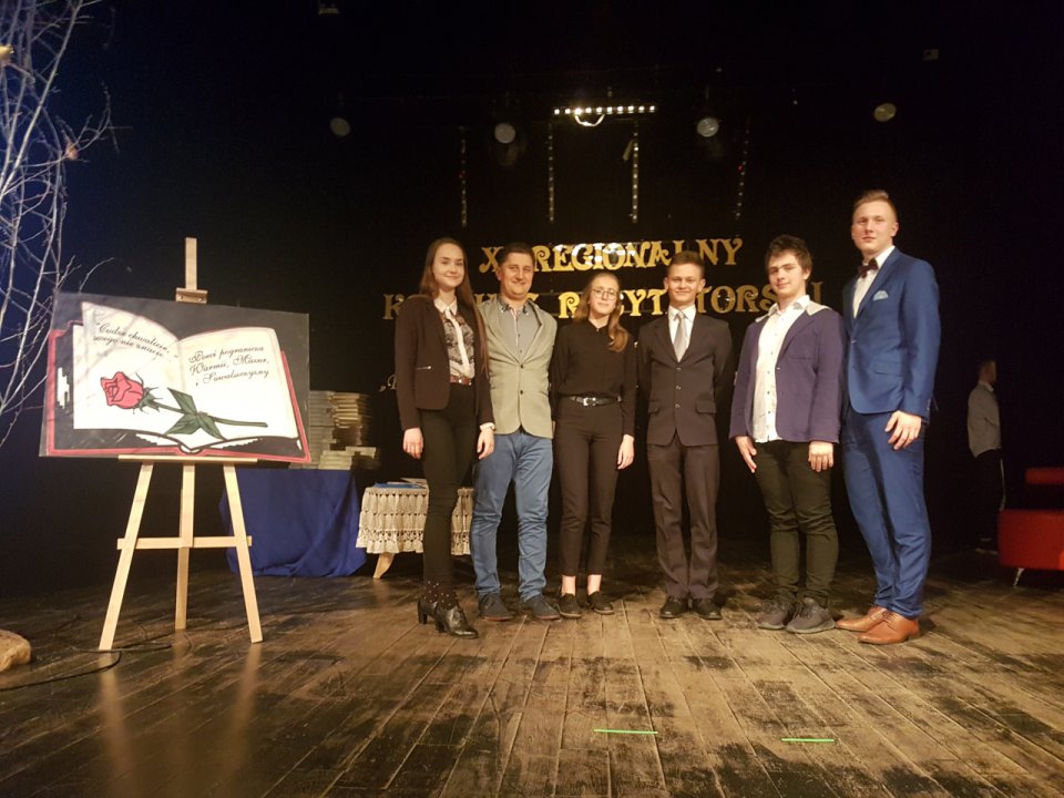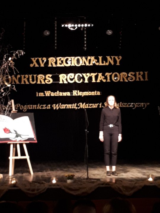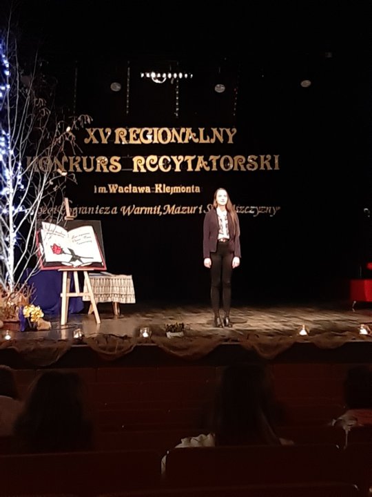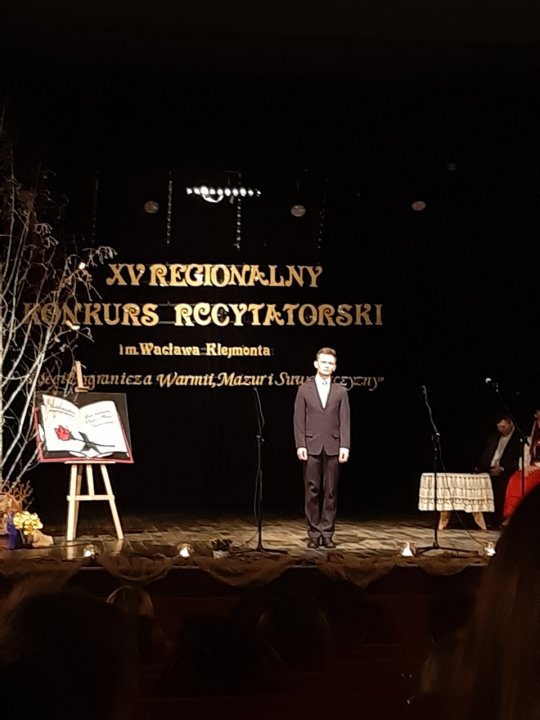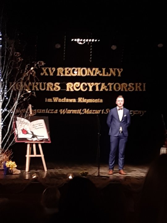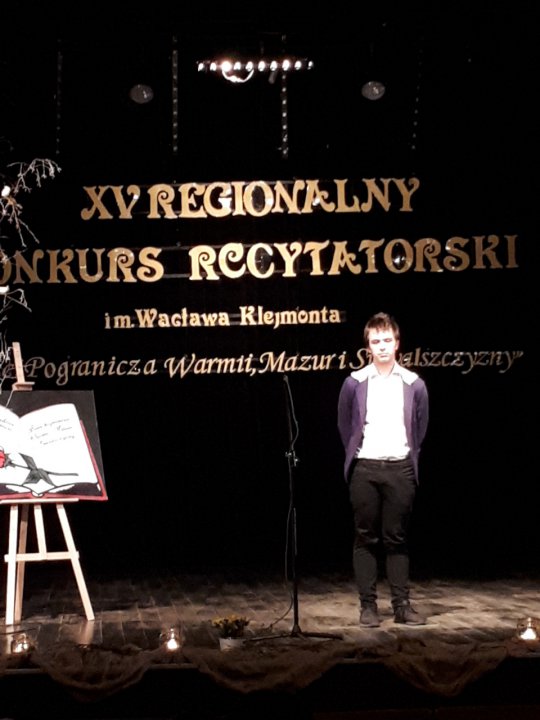 Miło jest nam poinformować, iż młodzi artyści z Augustowa zajęli pierwsze miejsca we wszystkich czterech kategoriach konkursowych! W dwóch najstarszych zaś triumfowali uczniowie naszej Szkoły! I tak w kategorii III (uczniowie klas trzecich gimnazjum oraz klas pierwszych szkół ponadgimnazjalnych) zwycięzcą został Mateusz Olszewski z klasy I c (opiekun artystyczny: Dorota Prokop), w którego wykonaniu publiczność usłyszała utwory Krzysztofa Szatrawskiego „locus solus” oraz Tobiasza Stullicha „Jesień”. Mateusz otrzymał także Nagrodę Specjalną Burmistrza Olecka za najciekawszą interpretację wiersza Krzysztofa Dariusza Szatrawskiego. Wśród najstarszych uczestników zmagań bezkonkurencyjny okazał się Dawid Sujata z klasy III b (opiekun artystyczny: Tomasz Choroszewski), który zaprezentował teksty Krzysztofa Szatrawskiego „locus solus” oraz Marii Zientary-Malewskiej „Drewniany Polak”. Dawid zdobył także Nagrodę Specjalną Marszałka Województwa Warmińsko-Mazurskiego dla najlepszego recytatora XV Regionalnego Konkursu Recytatorskiego im. Wacława Klejmonta „Poeci Pogranicza Warmii, Mazur i Suwalszczyzny”. II miejsce zajął Mateusz Rusiłowski z klasy III d (opiekun artystyczny: Dorota Prokop), który dokonał interpretacji wierszy Michała Kajki „Dom rodzinny” oraz Krzysztofa Szatrawskiego „kierowaliśmy się ku brzegom”. Wyróżnienie zaś trafiło do rąk Julii Kopiczko z klasy II c (opiekun artystyczny: Tomasz Choroszewski), w której wykonaniu można było usłyszeć wiersze Krzysztofa Szatrawskiego „doświadczenia metafizyczne” oraz Wojciecha Kętrzyńskiego „W ojczystym kraju”.